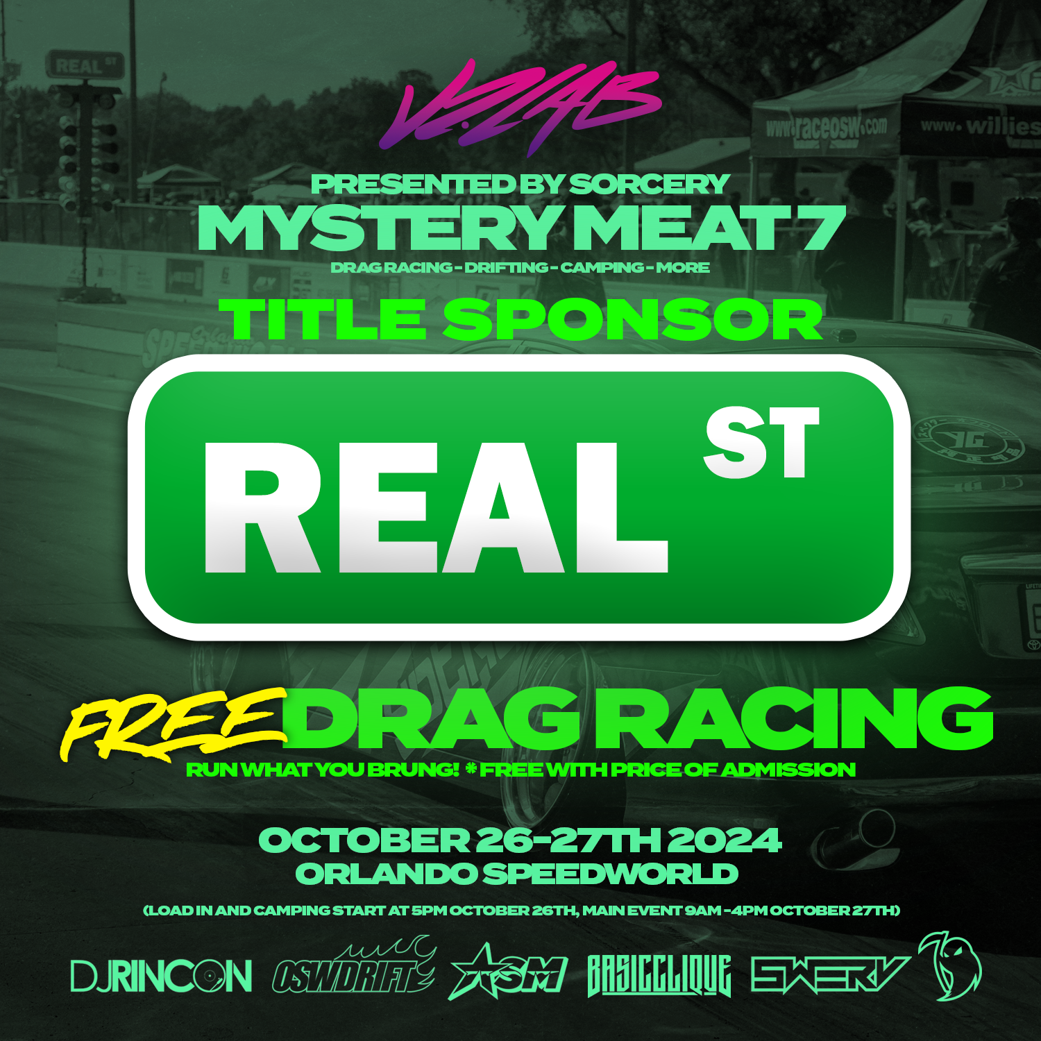 Entry top this event will be $20 per person, kids in free. Included in your $20 entry; Free Drift Ride Alongs, (Age 16-17 with parental waiver) & Free Drag Racing (Age 16-17 with parental waiver). Food Trucks, Swerv’s Block Party, Atlantic Street Movement’s Get Low Invitational, & more activities and attractions that will be posted in the near future on our Instagram. @V2LAB.